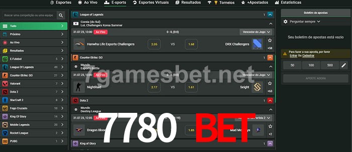 O 7780 Bet oferece uma grande seleção de opções de apostas em e-sports com probabilidades competitivas